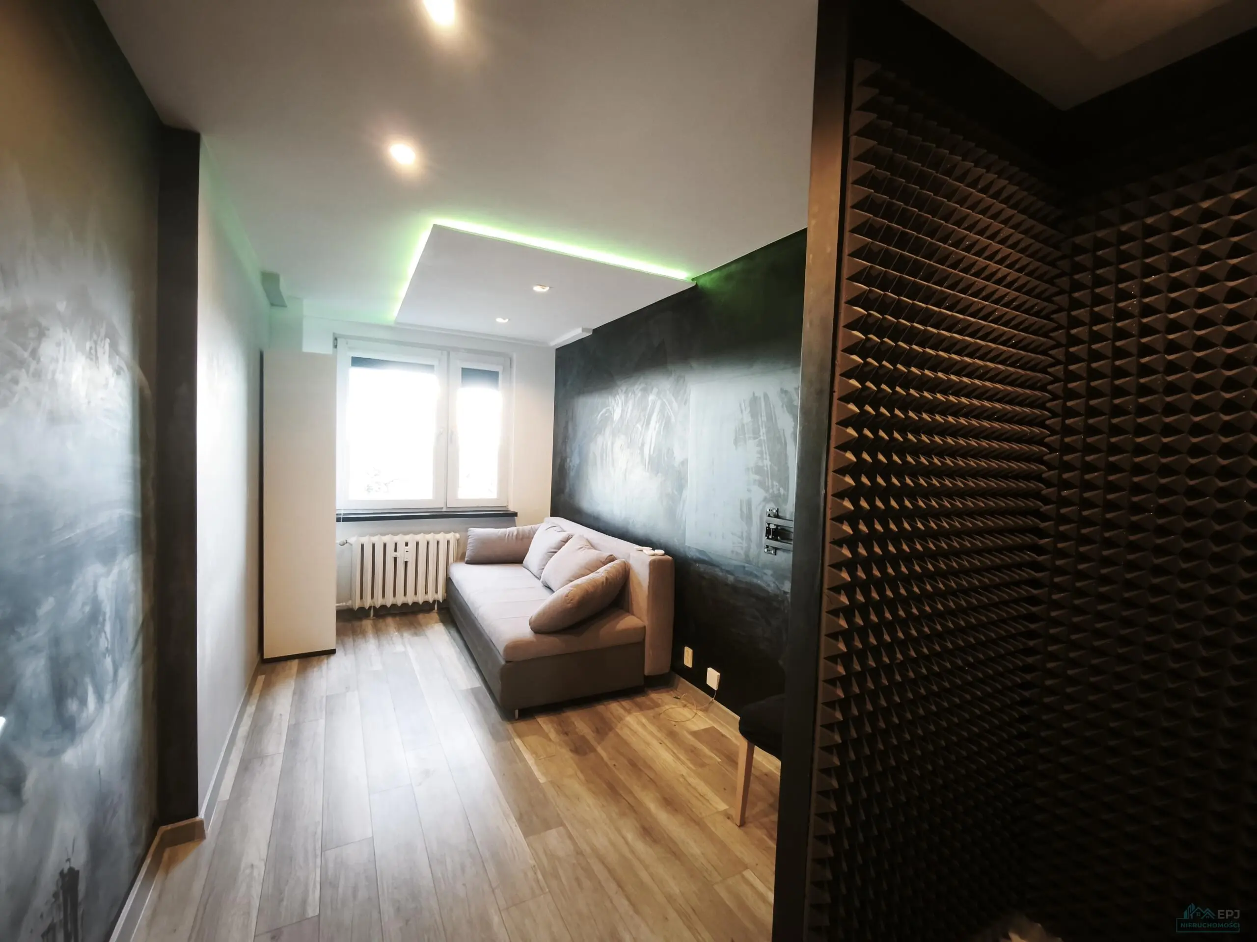 -dwie sypialnie – w tym jedna z nowoczesnym oświetleniem LED i wydzieloną strefą akustyczną (idealna do pracy, nauki lub relaksu),